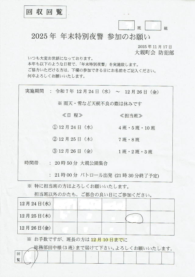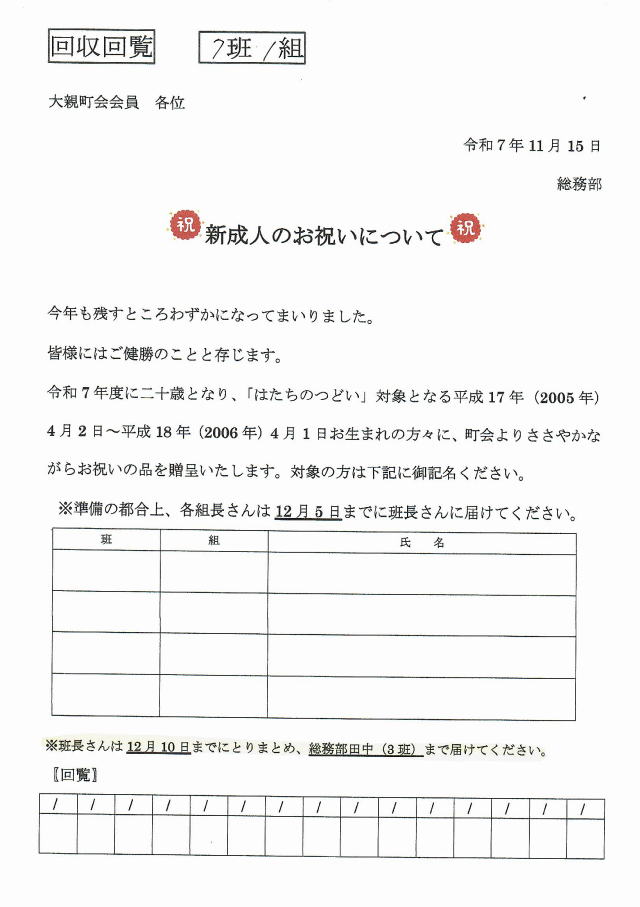 町会専用回覧